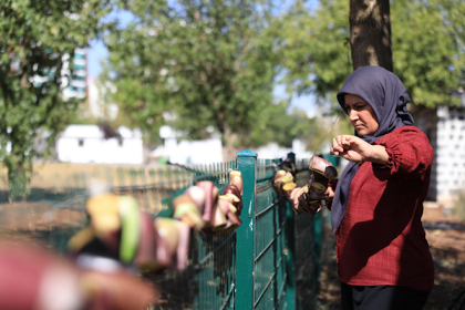 Kayapınar’da kadınlar kurutmalık patlıcan üretti